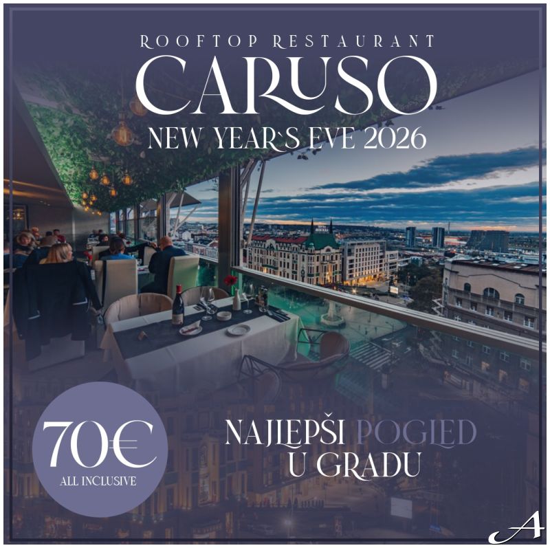 Dočekajte Novu 2026. godinu u Restoranu Caruso uz pogled na Kulu Beograd i spektakularan vatromet!