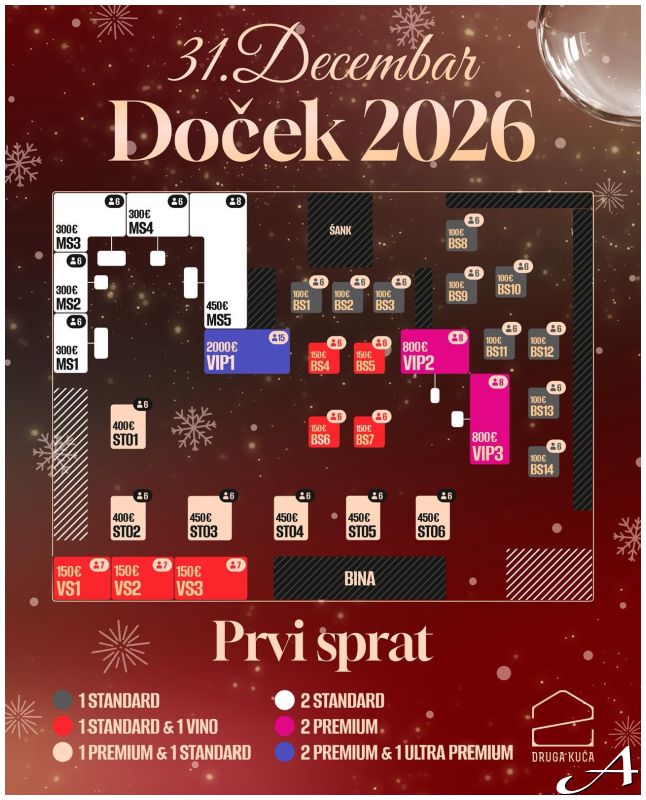 Druga Kuća docek Nove godine 2026 biće izuzetno posebna noć gde vas očekuje mnoštvo iznenađenja i uzbuđenja. Neka ovaj