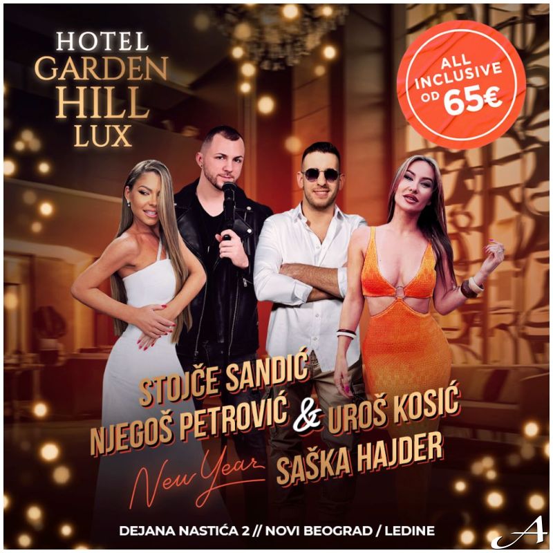 U novogodišnjoj noći ekskluzivnog hotela Garden Hill Lux za sjajnu atmosferu će biti zaduženi fantastični pevači Uroš Kosić, Njegoš Petrović, Stojče Sandić i Saška Hajder.