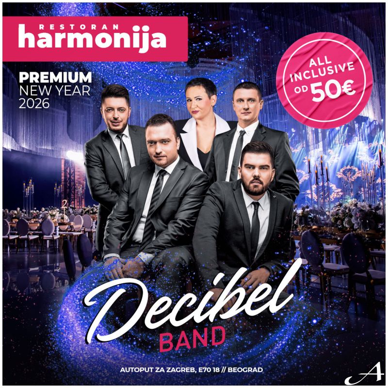 Za ritam, ples i dobru energiju biće zadužen Decibel bend, sastav koji svojim nastupima uvek podigne publiku na noge. Fantastični vokali, raznovrstan repertoar i iskrena emocija kojom sviraju čine ih jednim od omiljenih bendova za doček širom Beograda. Publiku očekuju najveći domaći i strani hitovi, od pop i rok klasika do pesama koje stvaraju pravu euforiju u ponoć.