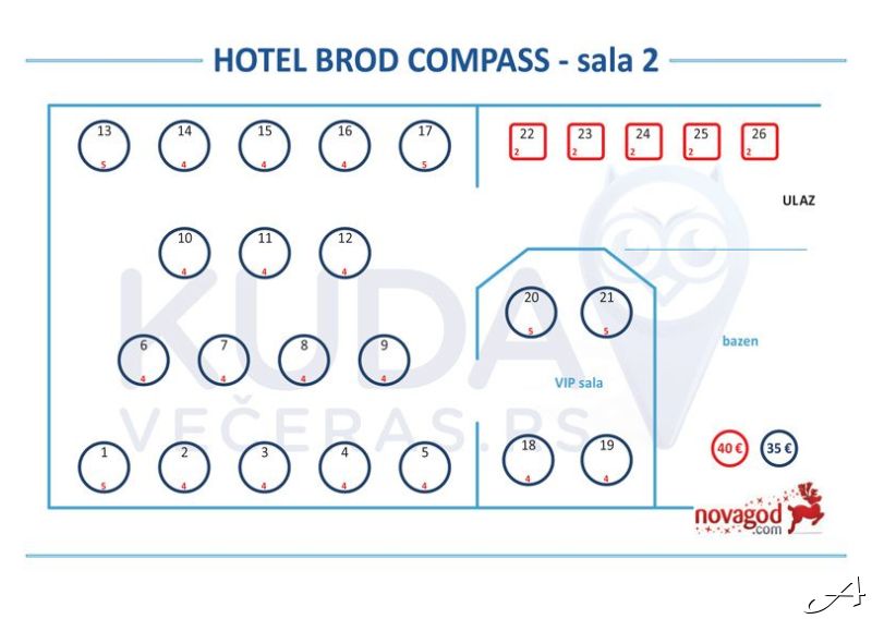 Svaka cena podrazumeva svečano banket sedenje, neograničeno piće i kompletnu svečanu večeru!