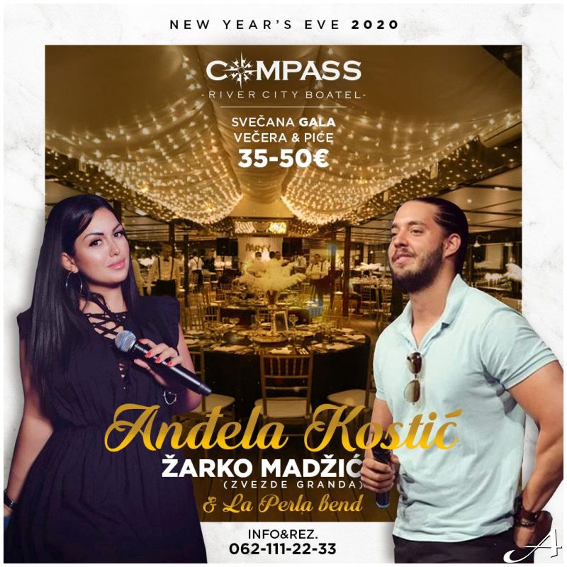 Žarko Madžić (Zvezde granda) i Anđela Kostić sa La Perla bendom.Restoranska salaNa novogodišnje veče će vas zabavljati fenomenalan duo:
