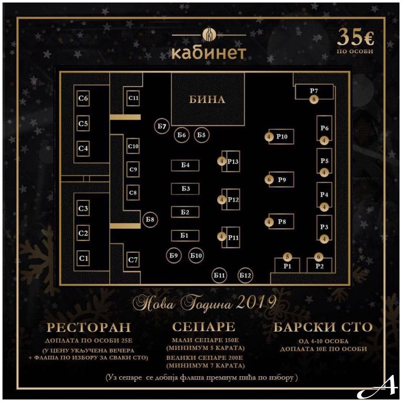 25€ (u cenu uključena večera + flaša po izboru za svaki sto)