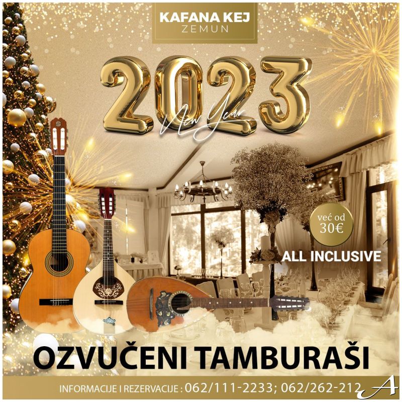 Kafana Kej doček Nove godine 2023 biće dočekana onako kako priliči ovakvom ambijentu - uz tamburaše i vrhunsku ponudu pića i hrane u kojima ćete takođe uživati. Spremite se za nezaboravnu Novu godinu u dobro poznatoj kafani Kej!