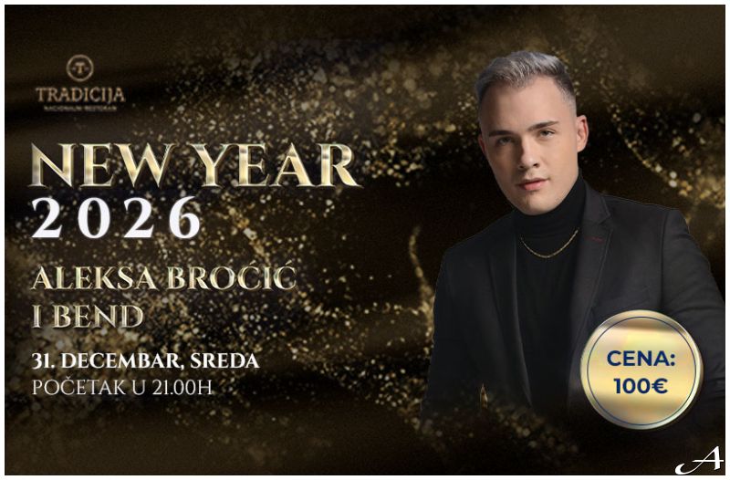 U novogodišnjoj noći zabavljajće vas fantastični Aleksa Broćić i Bend, koji će se pobrinuti za sjajnu zabavu i atmosferu, odlično raspoloženje i muziku prilagođenu svakom ukusu.