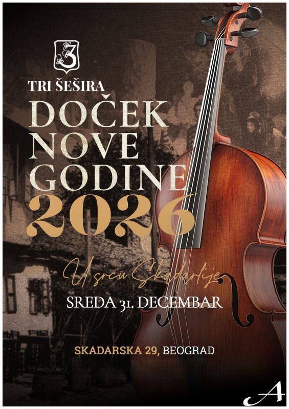 Restoran Tri šešira Nova godina 2026 donosi još jedno veče ispunjeno duhom stare Skadarlije i onom posebnom toplinom zbog koje se gosti uvek vraćaju. U srcu beogradske boemske četvrti, doček Nove godine biće prožet muzikom, emocijama i atmosferom kakvu samo ova čuvena kafana ume da stvori.