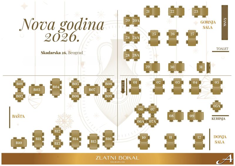 Restoran Zlatni bokal - Doček Nove godine 2026 Beograd