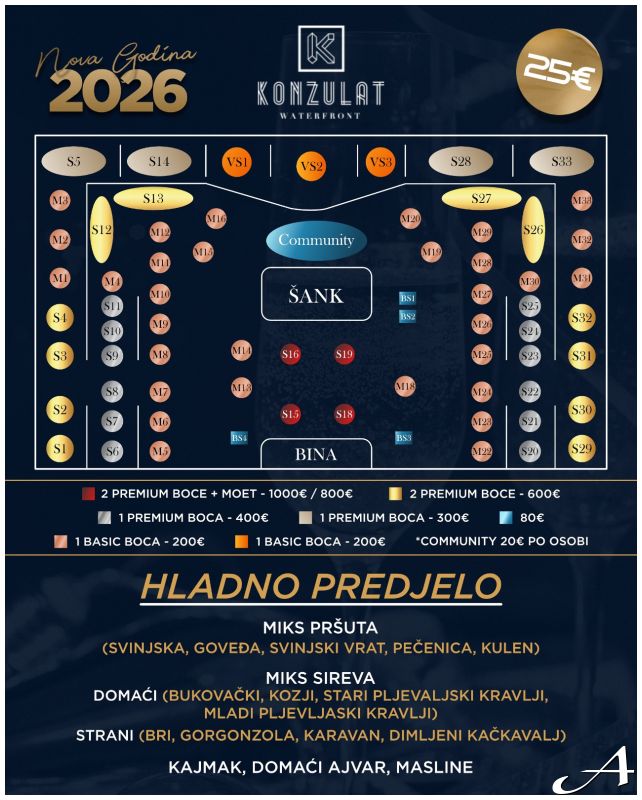 Dočekajte ponoć na prestižnom Zemunskom keju, u okruženju koje odiše stilom i elegancijom, dok uživate u vrhunskoj muzici i spektakularnoj atmosferi. Rezervišite svoje mesto na