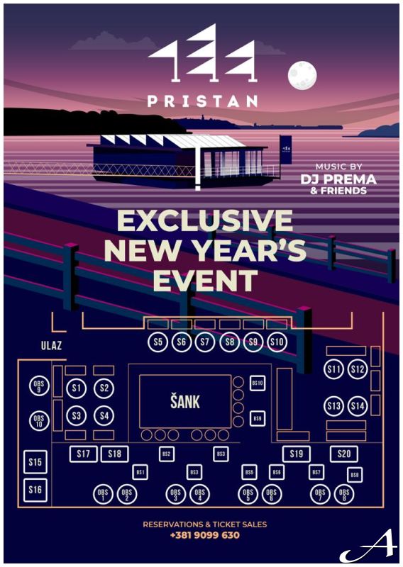Spustite se na reku i zakoračite u 2024. godinu na najuzbudljivijem klupskom dočeku u Beogradu - na splavu Pristan!Pristan je svojim modernim izgledom i jedinstvenim programom brzo dobio epitet jednog od najpopularnijih klubova u